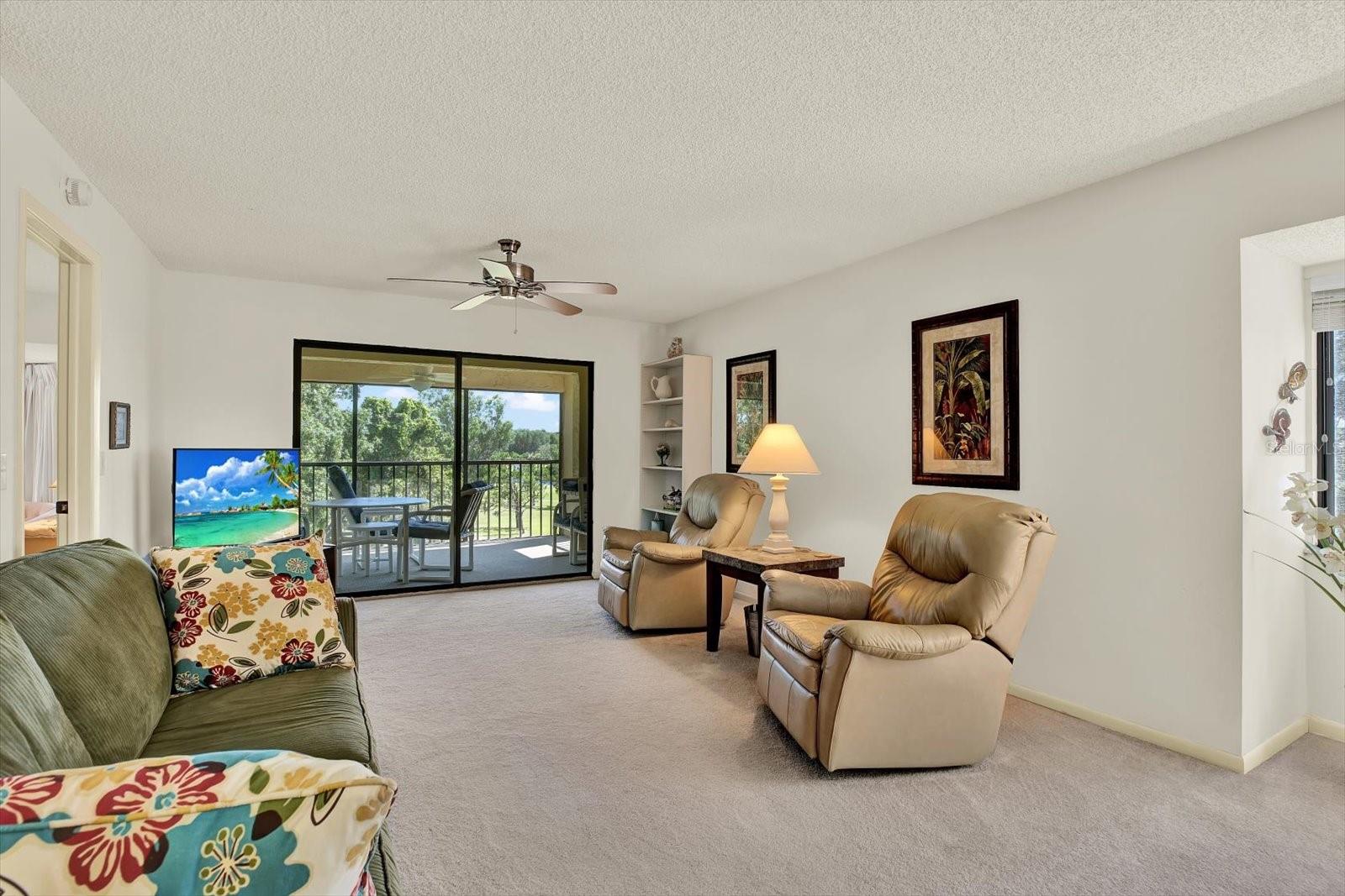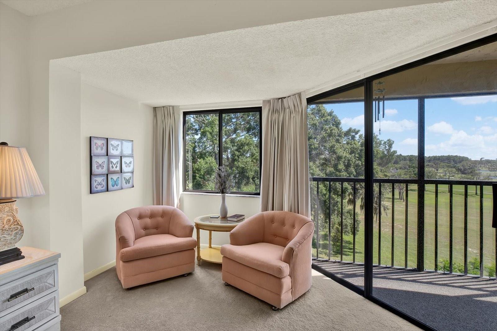 You will be captivated by this exceptional corner residence, where elevated tranquility meets sun-drenched interiors in the desirable 55+ community of Green Dolphin. From the moment you step through the inviting entryway, your eyes are pulled toward the breathtaking views that define this home's character. This is not just a condo; it's a lifestyle, offered **fully furnished** for a truly turnkey experience. The heart of the home is a bright and airy living space, bathed in natural light from the extra windows afforded by its premium corner location. This unique position provides stunning dual vistas of both the serene community pool and the manicured golf course—a perspective few other units can offer. The layout flows seamlessly to the private patio, your personal haven for morning coffee or enjoying Florida's amazing sunsets. Designed for both function and effortless entertaining, the immaculate kitchen features a pass-through breakfast bar, and an abundance of storage. Best of all, it shares a gorgeous view of the golf course, making meal preparation a pleasure. Retreat to your private, over-sized master suite, a true sanctuary designed for relaxation. This spacious retreat includes a dedicated sitting area overlooking the golf course and with direct access to the patio. The ensuite is equally impressive, boasting a large walk-in closet, a dual-sink vanity with ample storage, a separate shower/bath area, and an additional mirrored closet. Your guests will feel right at home in the spacious second bedroom, conveniently located near the second full bathroom, which features a walk-in shower. The third-floor location, easily reached by **elevator**, offers the perfect balance of commanding views without the ground-level noise. Your ownership includes a coveted **under-building parking space** with an **adjacent, secure storage closet** — adding a layer of convenience and peace of mind. Green Dolphin is a vibrant and meticulously maintained community offering an active lifestyle. Your low HOA dues include a heated pool, clubhouse, fitness center, tennis & pickleball courts, BBQ area, walking trails, water, trash, high-speed internet, and cable. The convenience, however, extends far beyond the community gates. Your new home is ideally situated just moments from everyday necessities, with a grocery store and a variety of popular restaurants only a few blocks away. Peace of mind is invaluable, and it comes from knowing the renowned Advent Health hospital is just around the corner. For leisure and culture, you're a short trip from the historic Tarpon Springs Sponge Docks and beautiful local beaches, close to miles of bike trails and a nearby trolley stop, while the Tarpon Springs Golf Club IS your backyard. Don't settle for an ordinary condo. This is a rare opportunity to own a premier corner unit that offers an unparalleled combination of light, dual views, and move-in-ready convenience. Schedule your private showing today and discover your new, carefree lifestyle!